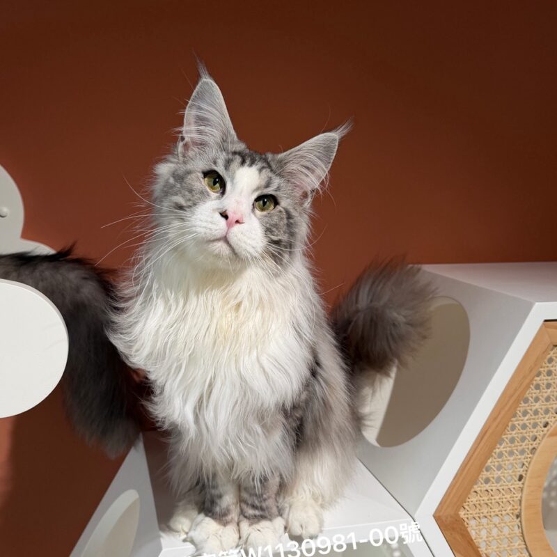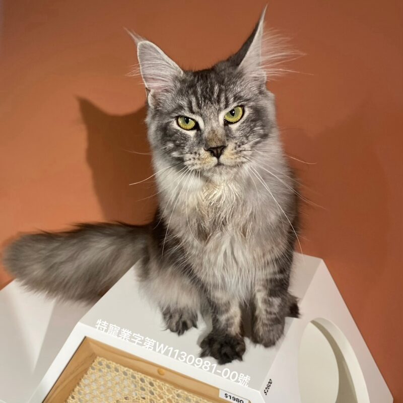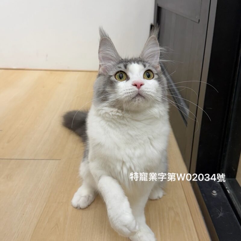 【由於緬因貓屬於大型晚熟品種,生長發育期可長達 3 到 5 年,欲精準評估緬因貓的成年體態與品系特徵,建議從幼貓 6 至 10 個月大時進行觀察並在此階段認養;此階段骨骼架構已趨於明顯,是預判未來發育走向的最佳黃金期】